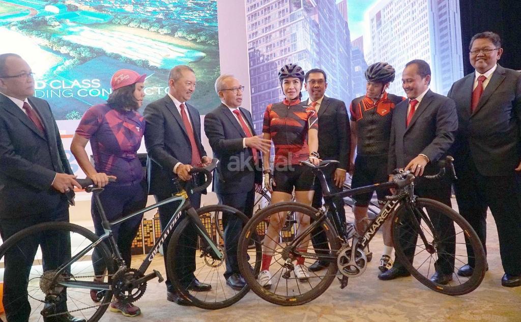 (dari kiri ke kanan) Direktur Keuangan, Abiprayadi Riyanto,Direktur pengembangan Investasi dan Human Capital, Nur Al Fata, Presiden Komisaris, Destiawan Soewardjono, Presiden Direktur, Nariman Prasetyo berbincang dengan atlit balap sepeda seusai penawaran umum perdana (initial public offering IPO) perseroan di Jakarta, Kamis (26/10). PT Wijaya Karya Bangunan Gedung Tbk (Wika Gedung) sebagai salah satu anak perusahaan PT Wijaya Karya (persero) Tbk (WIKA) berencana untuk menawarkan sebanyak – banyaknya .4.467.000.000 saham atau setara 40% setelah IPO. Perseroan memiliki tiga strategi bisnis yaitu Bisnis Inti (core Bussiness), Backward Integration dan Forwrad Integration. Bisnis inti Wika Gedung adalah penyedia jasa konstruksi high rise building.Selama 9 tahun sejak berdiri di tahun 2008,WIKA Gedung telah memperoleh 154 proyek dengan total nilai Rp 18,74 triliun.Pada semester I 2017,Kontrak baru WIKA Gedung mencapai Rp 4,32 triliun atau naik 59,9% dari pencapaian pada periode yang sama tahun 2016 sebesar Rp 2,7 triliun.Dengan kontrak bawaan (carry over) tahun lalu sebesar Rp 5,7 triliun dan kontrak baru senilai Rp 4,32 triliun. Maka total kontrak perseroan (order book) per semester I 2017 menjadi Rp 10,02 triliun. AKTUAL/Eko S Hilman