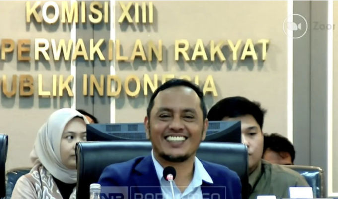 “Makasih, Pak, kita lanjut ke Gerindra, atau NasDem dulu?” tanya Willy saat rapat di Komisi XIII DPR, DPR RI, Senayan, Jakarta, Senin (13/4/2026).