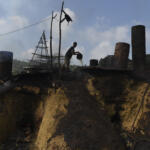 Penambang mengumpulkan minyak mentah di penambangan minyak rakyat di Wonocolo, Bojonegoro, Jawa Timur, Sabtu (23/7). Tambang rakyat tersebut tengah dikembangkan menjadi objek wisata migas petroleum geoheritage Wonocolo dengan harapan masyarakat mengetahui sejarah pengelolaan migas di Indonesia. ANTARA FOTO/Zabur Karuru/ama/16