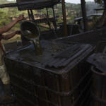 Penambang menuangkan air kedalam sebuah wadah ketika memulai menambang minyak mentah di penambangan minyak rakyat di Wonocolo, Bojonegoro, Jawa Timur, Sabtu (23/7). Tambang rakyat tersebut tengah dikembangkan menjadi objek wisata migas petroleum geoheritage Wonocolo dengan harapan masyarakat mengetahui sejarah pengelolaan migas di Indonesia. ANTARA FOTO/Zabur Karuru/ama/16