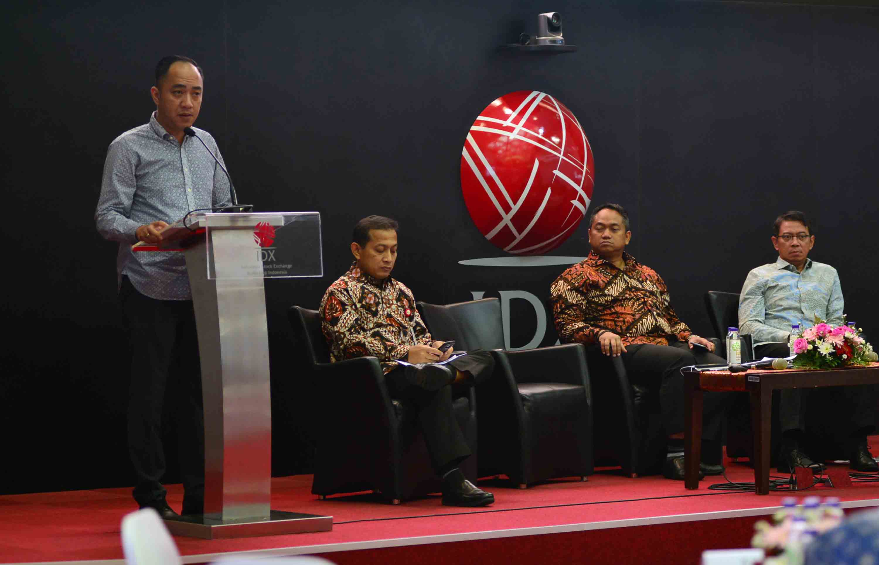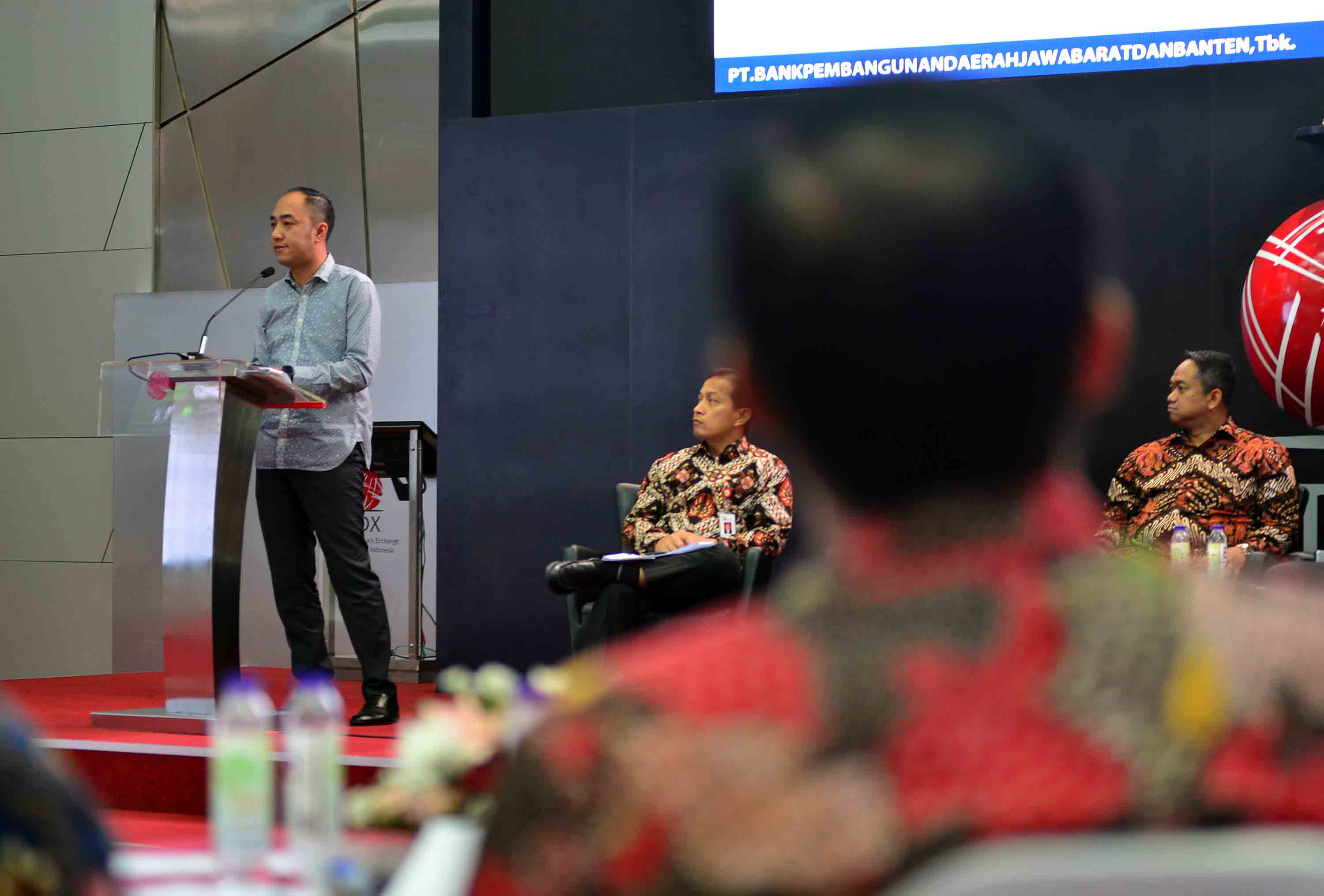Sekretaris Perusahaan bank bjb M. As'adi Budiman memberikan pemaparan saat Workshop Akselerasi Pertumbuhan BPD Melalui Penawaran Umum di Bursa Efek Indonesia, Jakarta, Jumat (26/10). Dalam workshop tersebut bank bjb memaparkan mengenai keberhasilannya sebagai Bank Pembangunanan Daerah pertama yang menjadi perusahaan publik dengan melakukan Initial Public Offering (IPO) dan termasuk kedalam daftar indeks LQ45 yang menunjukkan tingkat likuiditas yang tinggi. AKTUAL/Tino Oktaviano