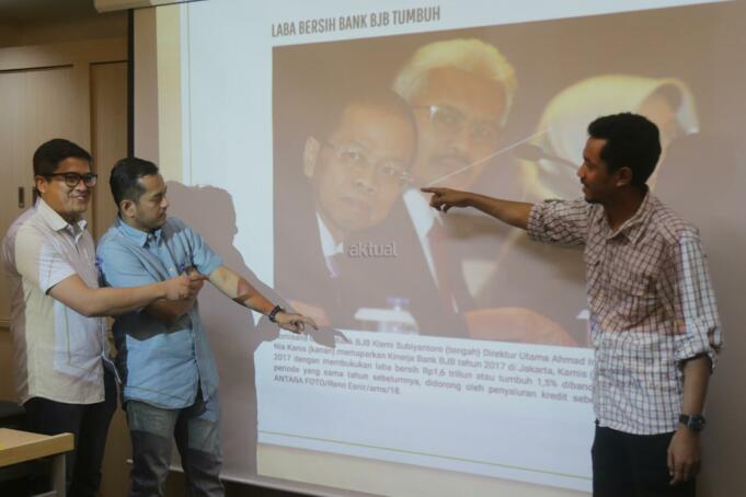 Pemimpin Redaksi Inilahcom M. Dindien Ridhotulloh memberikan pemaparan saat menjadi pembicara dalam Workshop Media Relations dan Peningkatan Kompetensi Bank bjb & Insan Pers di Jakarta, Sabtu (20/10). Kegiatan tersebut dilakukan sebagai program peningkatan kualitas karyawan Bank bjb dan insan pers dibidang jurnalistik dalam hal penulisan dan fotografi. AKTUAL/Tino Oktaviano