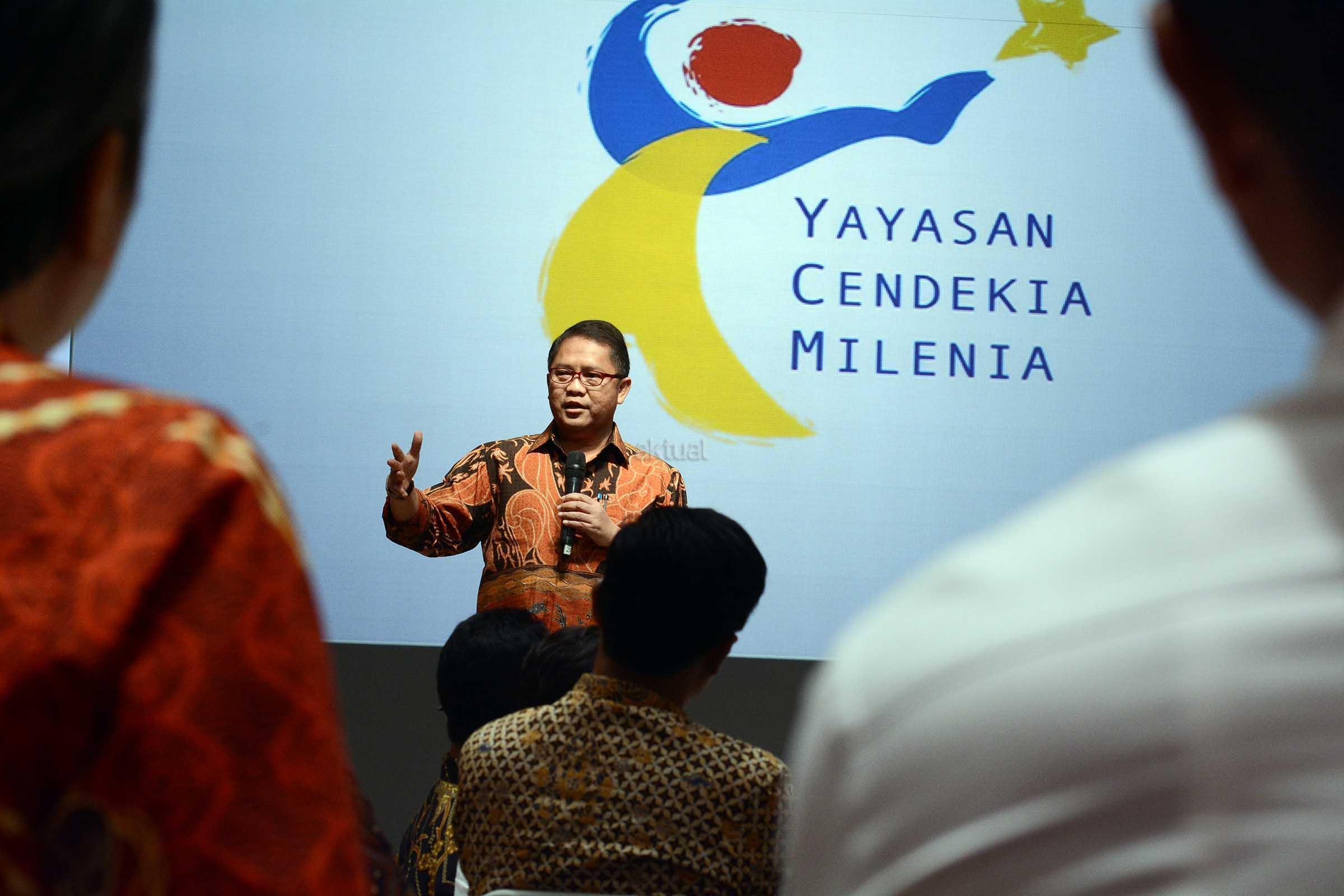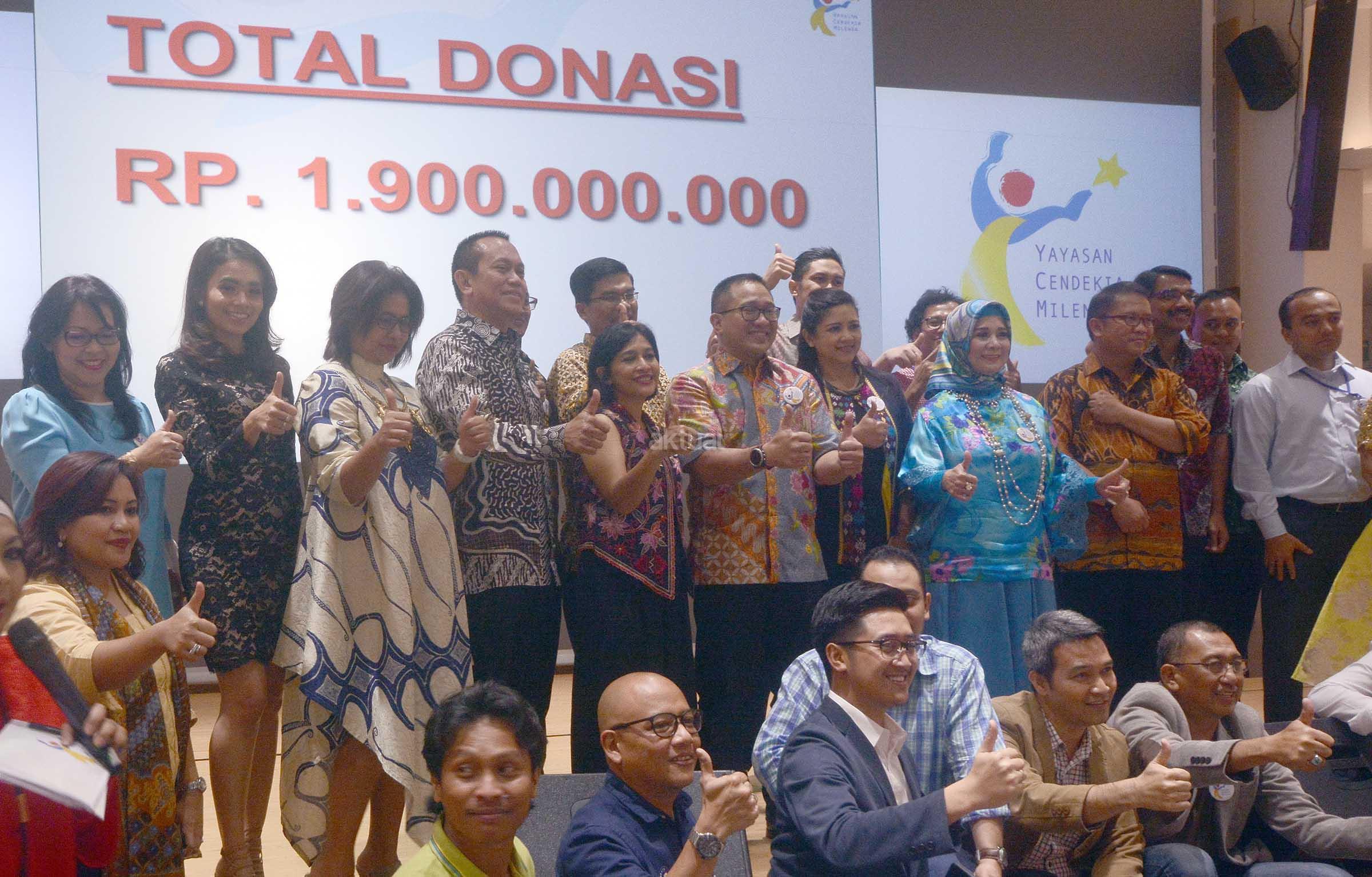 Menteri Komunikasi dan Informatika (Menkominfo), Rudiantara (ketiga dari kanan) didampingi Dewan Pembina Yayasan Cendekia Milenia (YCM), Alexander Rusli (tengah) dan Pengurus dan Pengawas YCM serta para pendonor berfoto bersa seusai penggalangan dana bagi YCM dalam kesempatan Gala Dinner di Jakarta Kamis (18/11) malam. Kegiatan YCM ke depannya selain memberikan beasiswa akan lebih luas dan ikut mendukung target kementerian komunikasi dan informasi untuk melakukan revolusi digital untuk merevolusi ekonomi Indonesia dengan menyiapkan sumber daya yang lebih handal. Melalui berbagai program seperti memperbanyak coding class termasuk homeschooling coding class, penyiapan ekosistem yang kondusif bagi developer muda yang berjiwa entrepreneurship. Mempersiapkan milenial menjadi start up, memfasilitasi mentor dan investor serta program-program inkubasi dan co-working space. AKTUAL/EkoS Hilman
