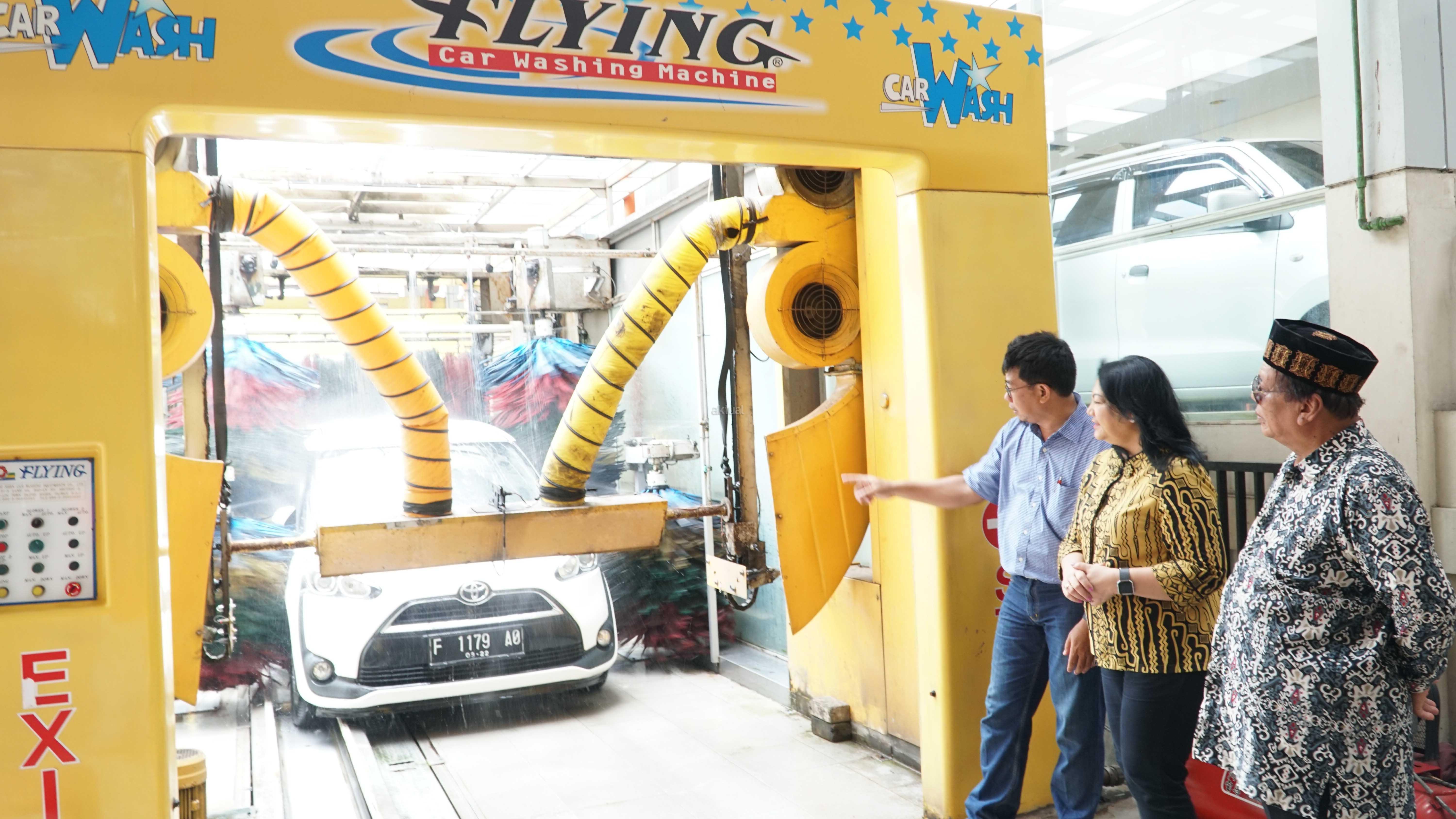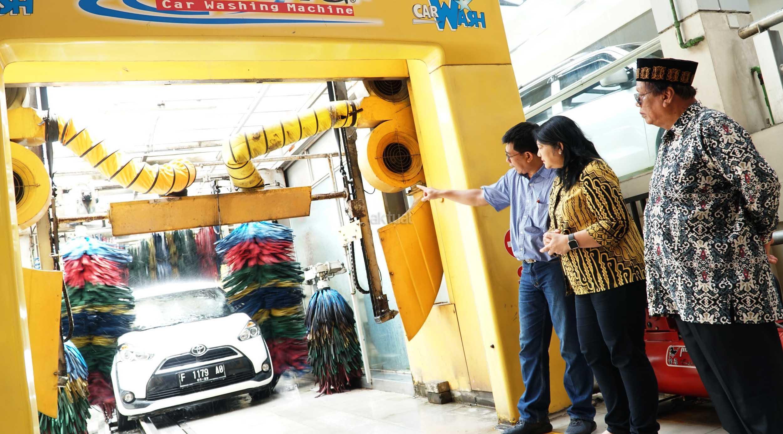Pimpinan Bengkel Mutiara Car Care Depok, Ahmad Yusuf (kiri) didampingi Pendiri Bengkel Mutiara Car Care, H. Mubin Usman (kanan) menjelaskan proses cuci robotik kepada Sekretaris Pengurus Yayasan Dharma Bhakti Astra (YDBA) Ida R.M. Sigalingging pada kegiatan Benchmark UKM Pra Mandiri ke UKM Mandiri YDBA (12/4). Kegiatan ini diadakan YDBA sebagai sarana pertukaran pengalaman dan pengetahuan antar UKM Bengkel untuk naik kelas dan mencapai kemandirian. AKTUAL/Eko S Hilman