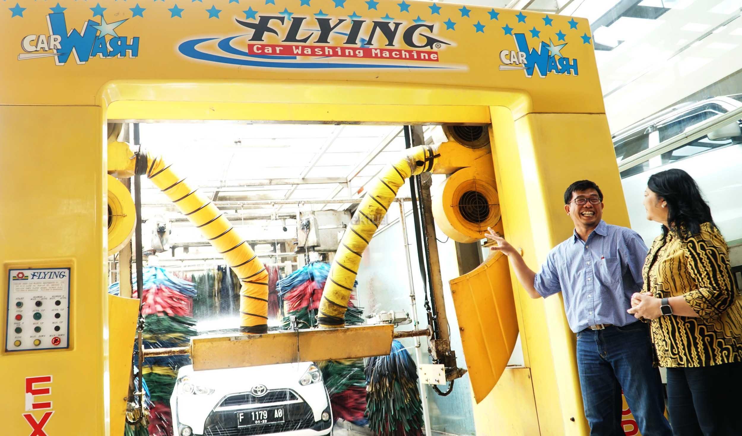 Pimpinan Bengkel Mutiara Car Care Depok, Ahmad Yusuf (kiri) menjelaskan proses cuci robotik kepada Sekretaris Pengurus Yayasan Dharma Bhakti Astra (YDBA) Ida R.M. Sigalingging pada kegiatan Benchmark UKM Pra Mandiri ke UKM Mandiri YDBA (12/4). Kegiatan ini diadakan YDBA sebagai sarana pertukaran pengalaman dan pengetahuan antar UKM Bengkel untuk naik kelas dan mencapai kemandirian. AKTUAL/Eko S Hilman