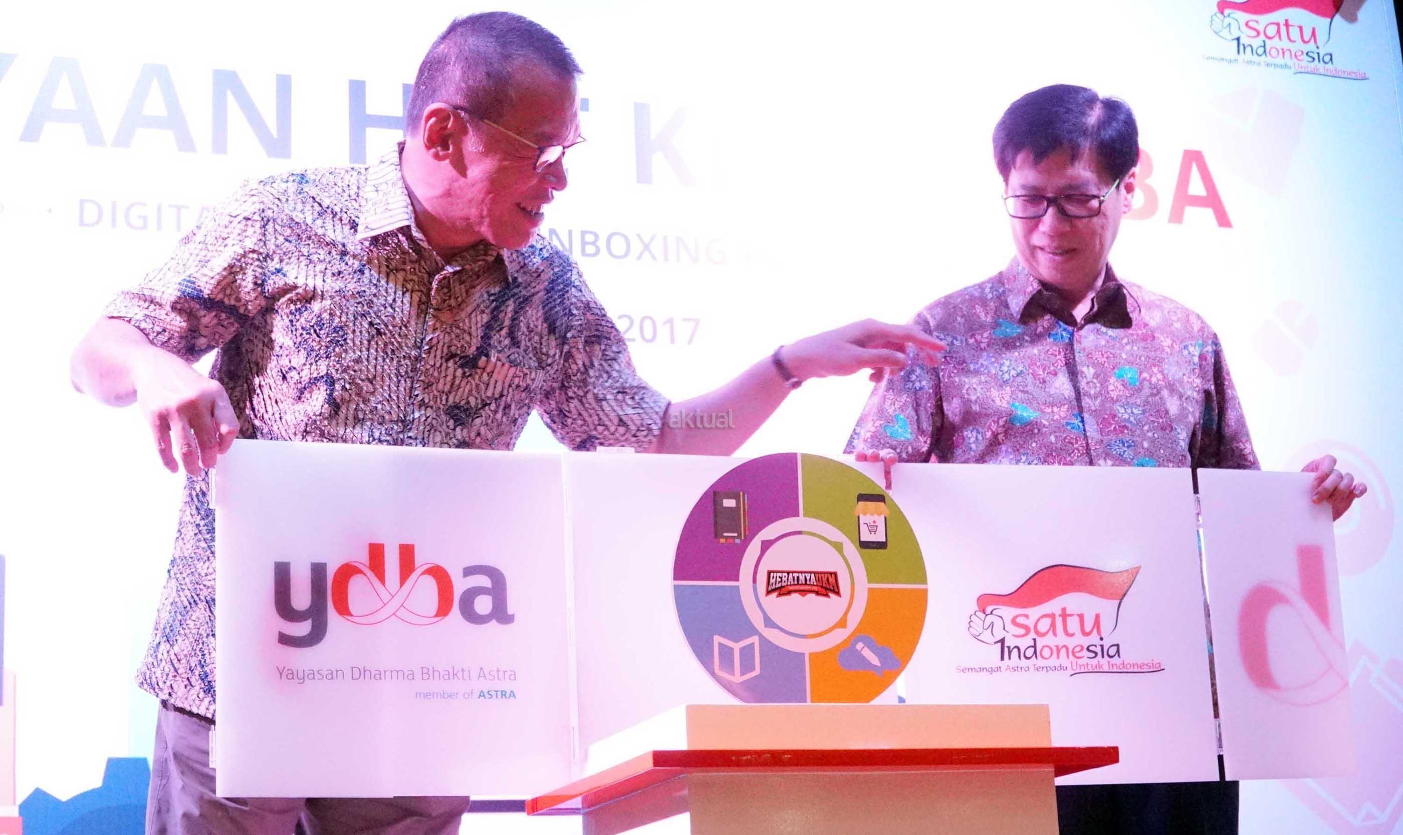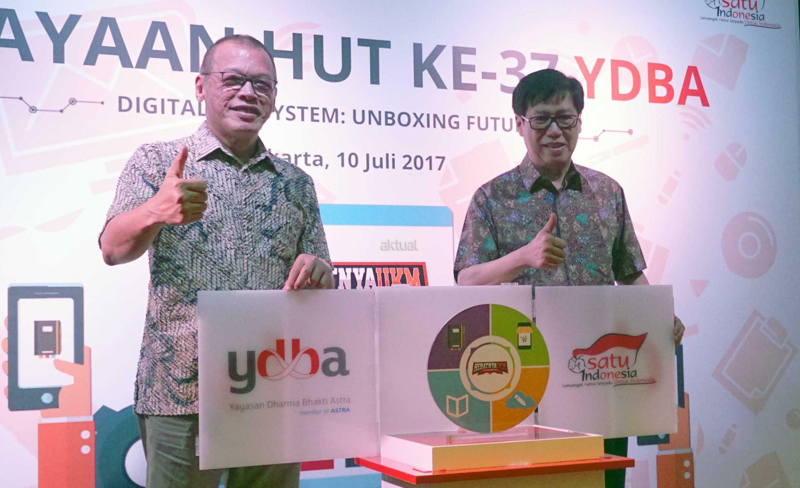 Ketua Pengurus Yayasan Dharma Bhakti Astra (YDBA), Henry C Wijaya (kiri) bersama Ketua Pembina YDBA, Johannes Loman membuka secara simbolis box digital menandai peluncuran Digital Ecosystem yang merupakan ekosistem digital YDBA berbentuk onlife platform yang beriringan dengan online platform yang sudah ada di William Soeryadjaya Hall, Jakarta,Senin(10/7) Ekosistem digital tersebut tertuang dalam kanal hebatnyaukm.org yang berisikan fitur Blog dan News yang berisi informasi seputar UKM dan kewirausahaan yang lebih mendalam.Ke depannya, kanal ini juga akan dilengkapi fitur E Learning supaya UKM bisa belajar melalui video video edukatif dan mempraktekan sendiri cara mengembangkan usaha. AKTUAL/Eko S Hilman