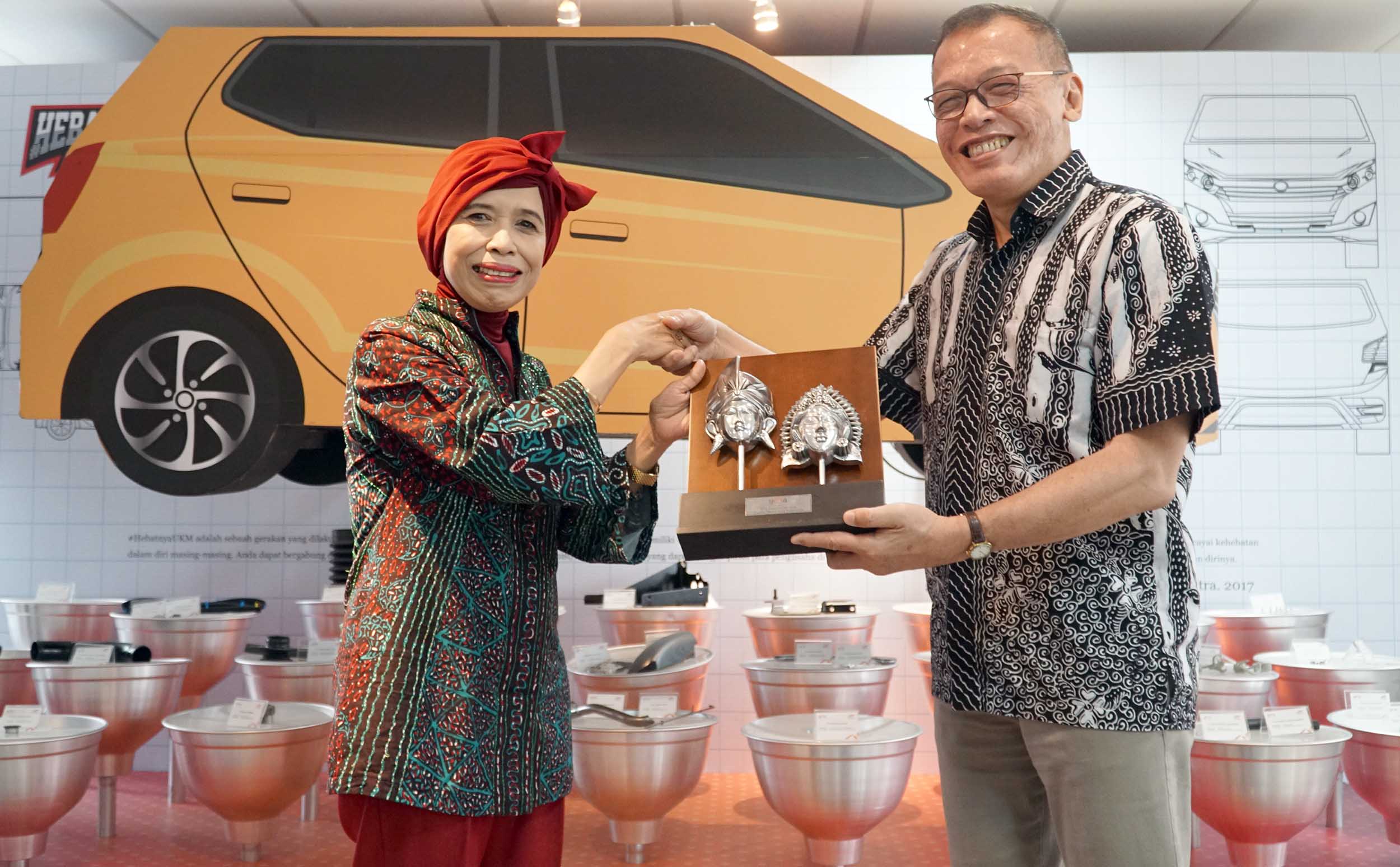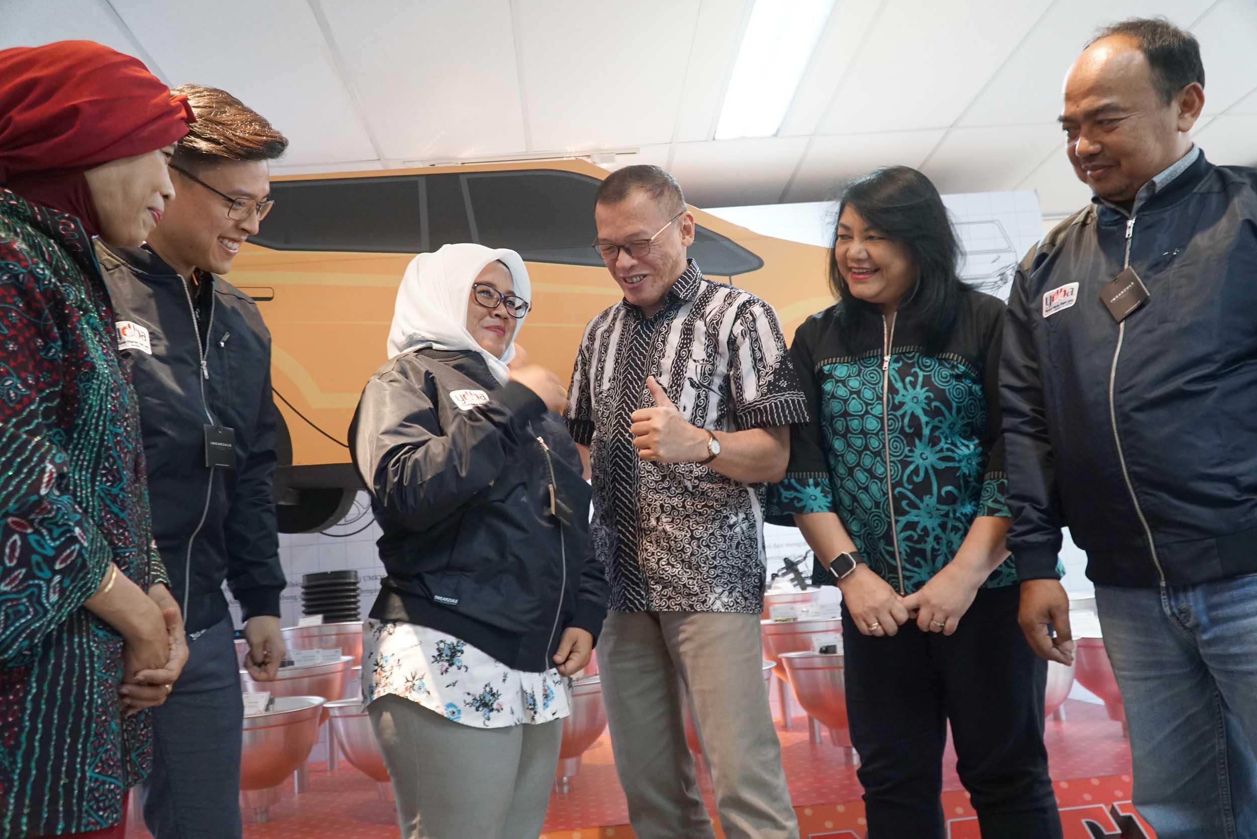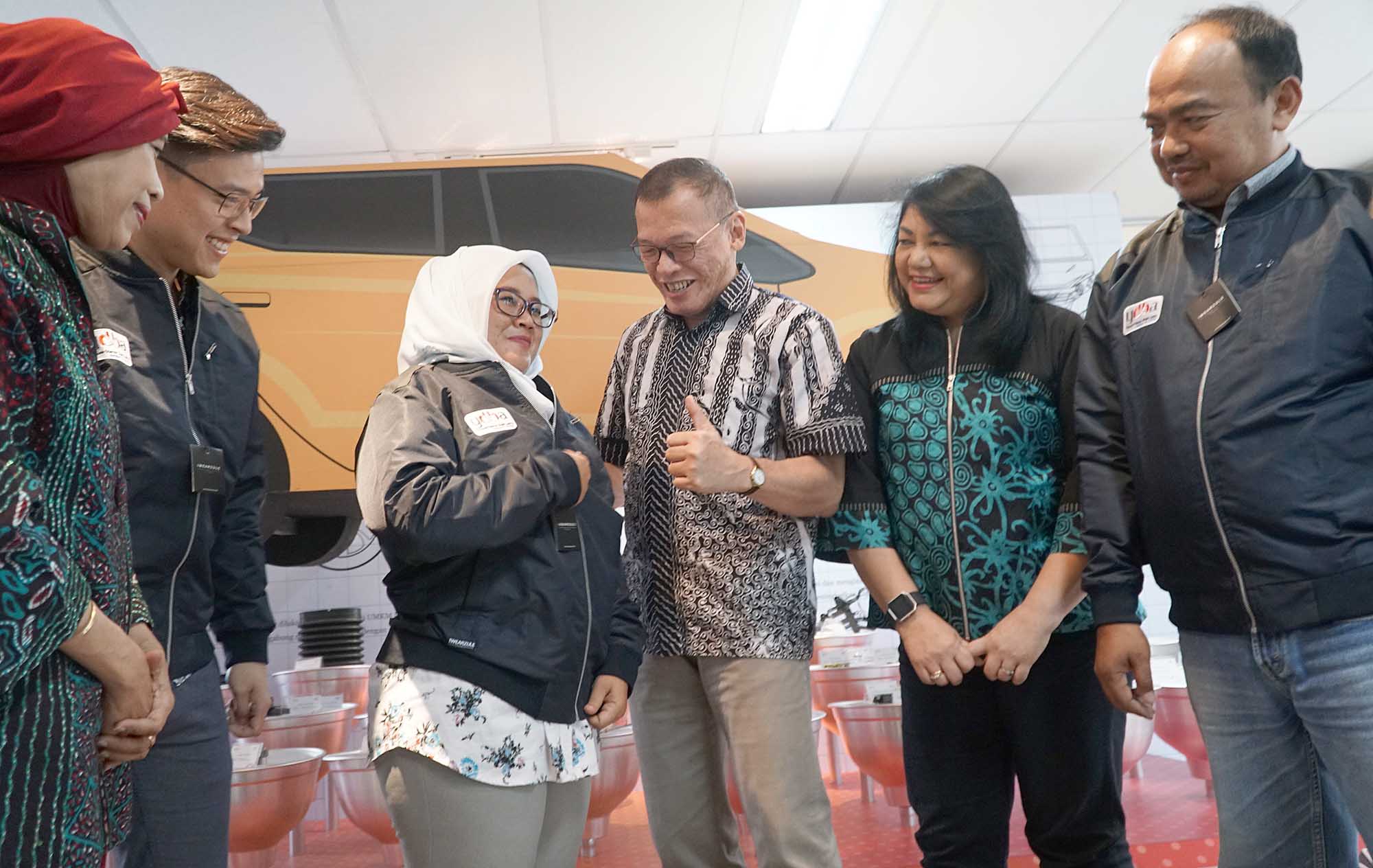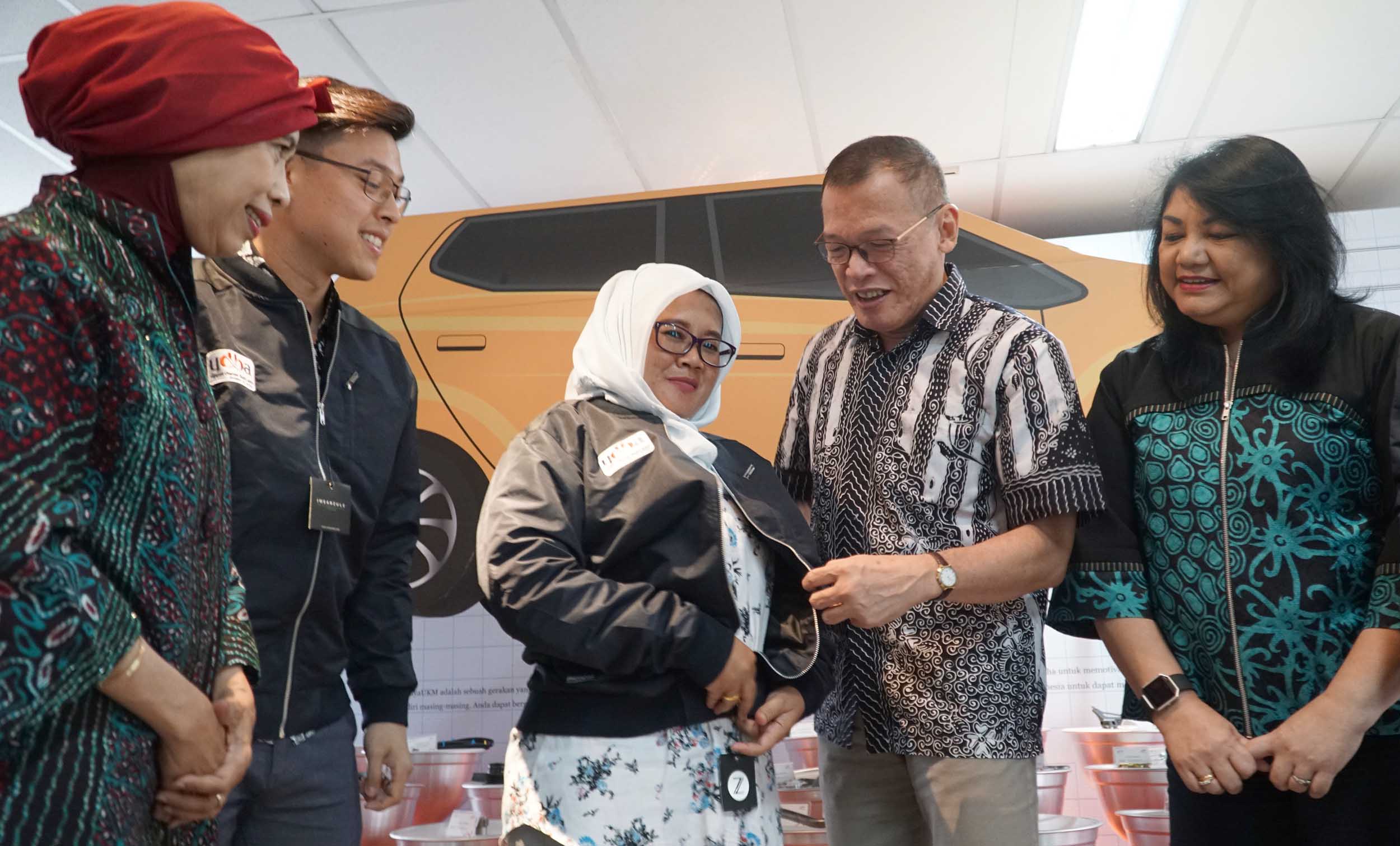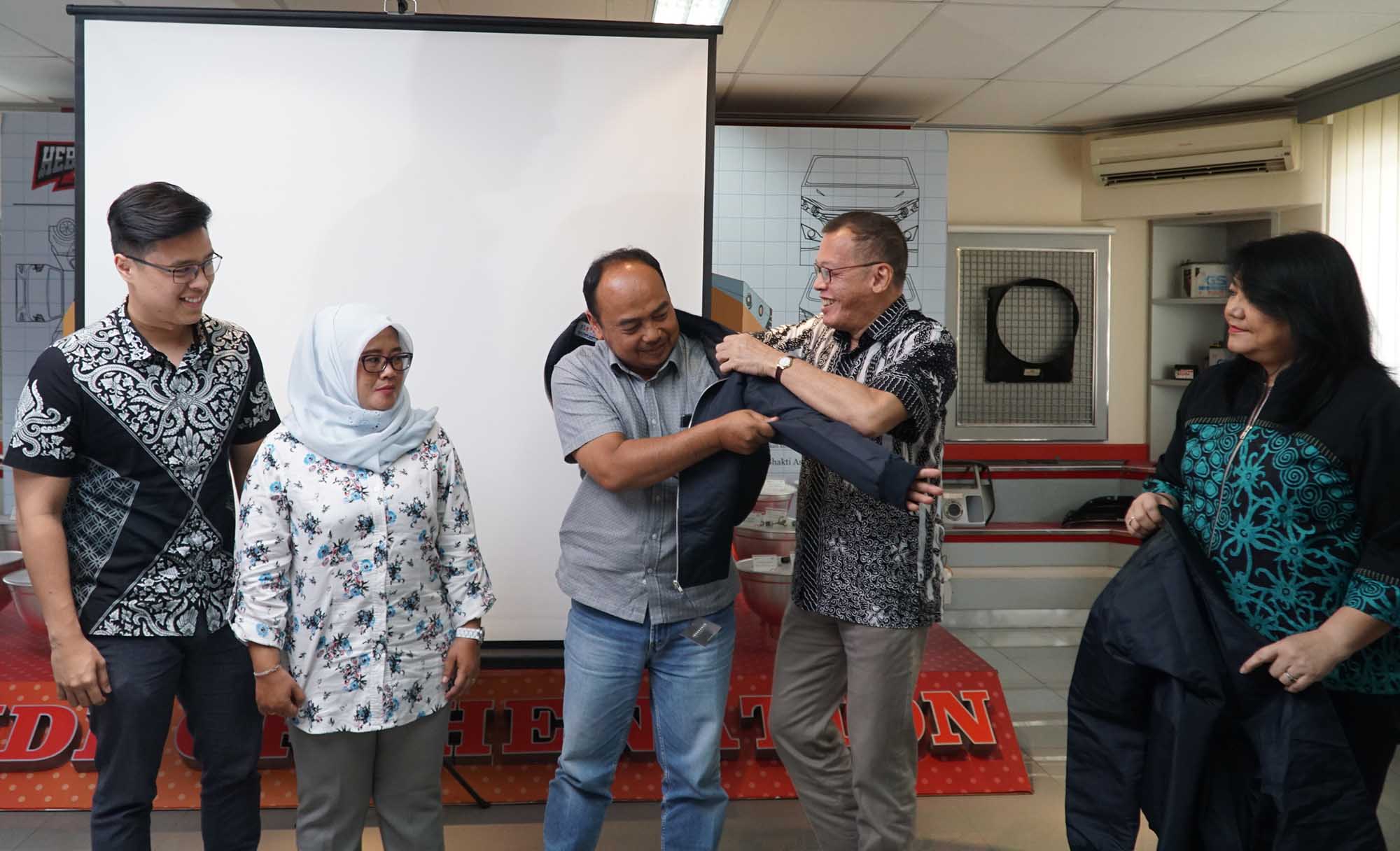 Dari kiri ke kanan, Advisor AOTS Jakarta Office Dea Intan Wada, perwakilan peserta pelatihan IDCM, Ketua Pengurus Yayasan Dharma Bhakti Astra (YDBA) Henry C Widjaja, Sekretaris Pengurus YDBA Ida R.M Sigalingging berbincang dan menyemat secara simbolis jaket kepersertaan dan pelepasn dengan perwakilan peserta UKM yang akan mengikuti pelatihan di Jakarta, Jumat (31/8). Tahun ini sebanyak 21 UKM berangkat mengikuti training The Program On Corporate Management for Indonesia (IDCM) di Kansai Kenshu Center,Osaka, Jepang. Selama hampir dua minggu peserta akan mendapatkan pelatihan manajemen perusahaan dan kesempatan benchmarking ke beberapa UKM Jepang. Hingga saat ini jumlah UKM yang telah YDBA berangkatkan sejak gelombang 1 hingga ke tujuh sebanyak 158 UKM. Program training IDCM ini merupakan kerjasama YDBA, AOTS dan Himpunan Alumni AOTS Indonesia (HAAI) . AKTUAL/Eko S Hilman