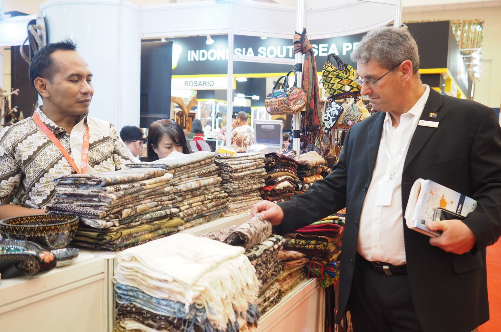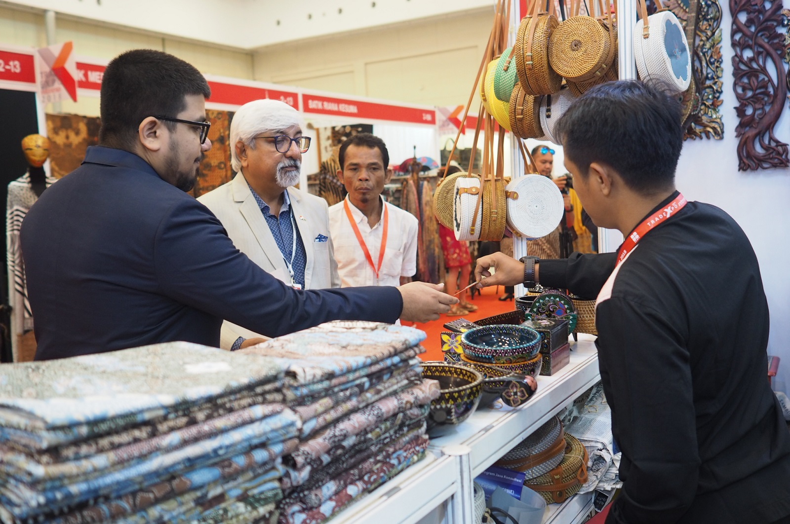 Calon buyer mancanegara mengunjungi booth UMKM Kerajinan Yayasan Dharma Bhakti Astra (YDBA) dalam Pameran Trade Expo Indonesia 2018 di ICE BSD City, Kamis (25/10). Sebanyak 8 UMKM Kerajinan mitra YDBA mengikuti pameran yang berlangsung pada 24 – 28 Oktober 2018 ini. Diikutsertakannya UMKM dalam pameran tersebut sebagai salah satu program fasilitasi pasar oleh YDBA. AKTUAL/Eko S Hilman