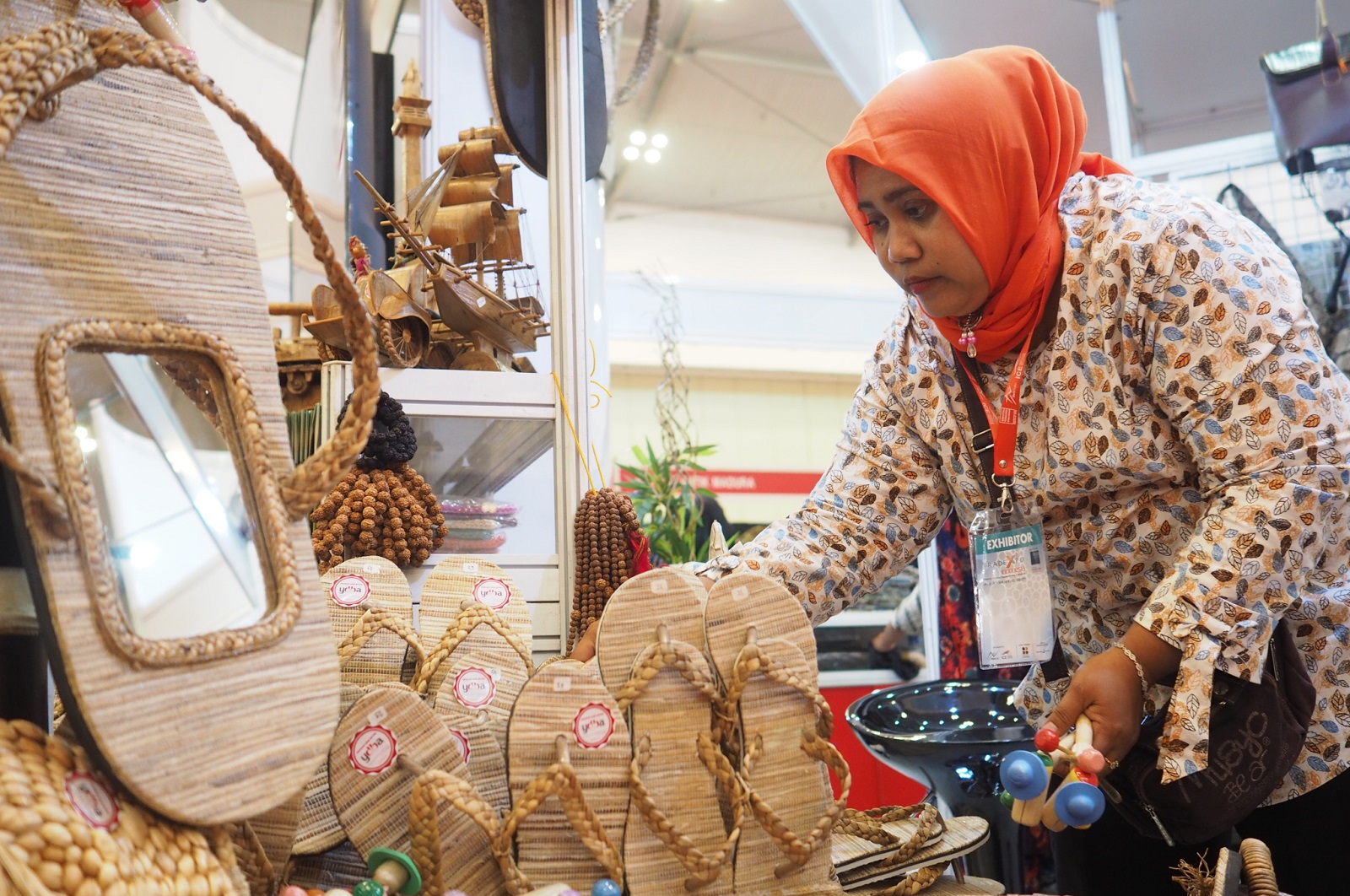 Salah satu UMKM Kerajinan Yayasan Dharma Bhakti Astra (YDBA) dalam Pameran Trade Expo Indonesia 2018 di ICE BSD City, Kamis (25/10). Sebanyak 8 UMKM Kerajinan mitra YDBA mengikuti pameran yang berlangsung pada 24 – 28 Oktober 2018 ini. Diikutsertakannya UMKM dalam pameran tersebut sebagai salah satu program fasilitasi pemasaran oleh YDBA. AKTUAL/Eko S Hilman