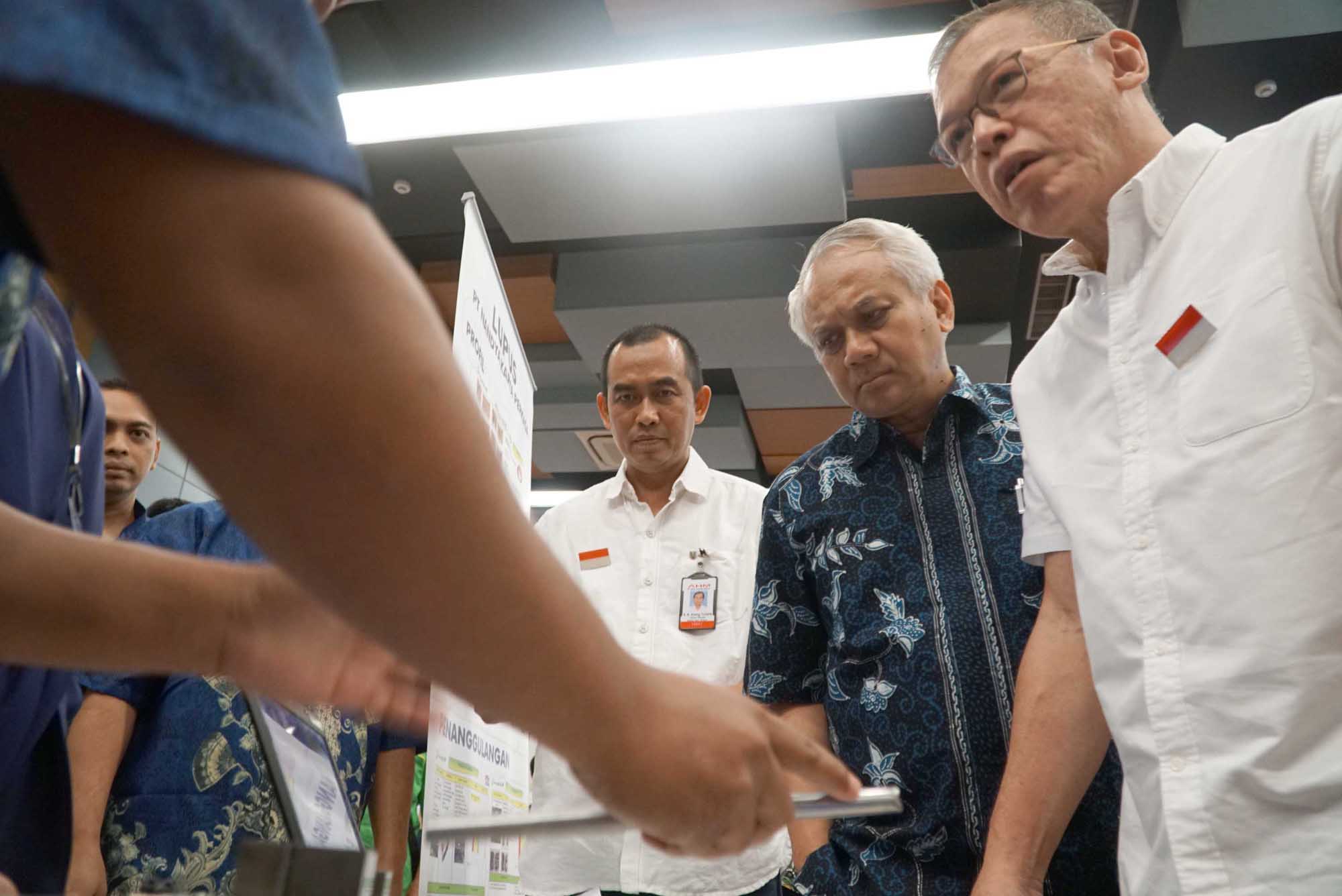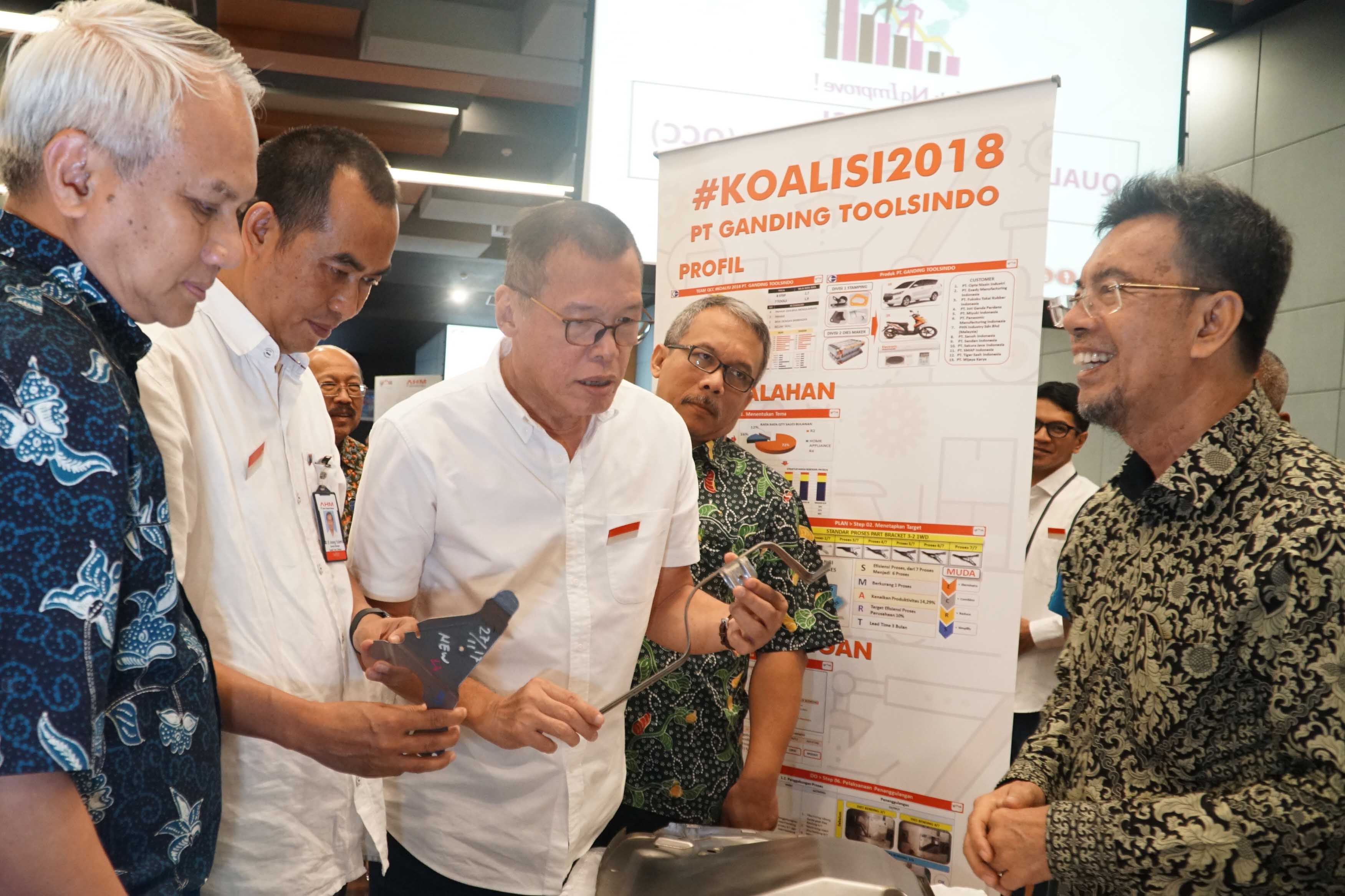 Ketua Pengurus Yayasan Dharma Bhakti Astra (YDBA) Henry C Widjaja bersama Pengurus YDBA dan Quality Technology Division Head PT Astra Honda Motor Setyo Budi Anang dan Advisor YDBA Tonny Sumartono meninjau salah satu stan usaha mikro kecil dan menengah binaan Yayasan Dharma Bhakti Astra (YDBA) saat Konvensi Quality Control Circle (QCC) ke-3, di kawasan Cikarang Barat, Jawa Barat, Jumat (21/9). Konvensi tersebut sebagai sarana UKM untuk berkompetisi dalam menerapkan budaya “continuous improvement” atau budaya kaizen agar menjadi naik kelas dan awet. AKTUAL/Eko S Hilman