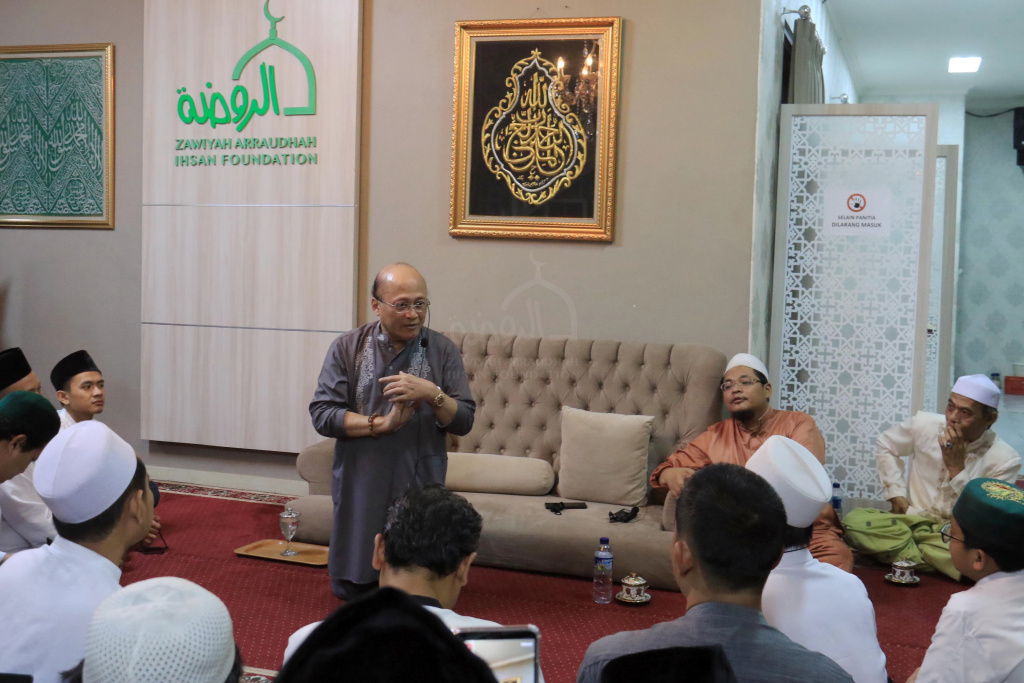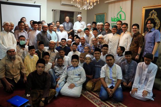 Peserta saat mendengarkan Motivator Mario Teguh saat mengisi acara Ramadan yang bertajuk 'Pemulih Jiwa' di Zawiyah Arraudhah Ihsan Foundation, Jalan Tebet Barat VIII, Jakarta Selatan, Sabtu (18/5/2019). AKTUAL/Ahmad Warnoto