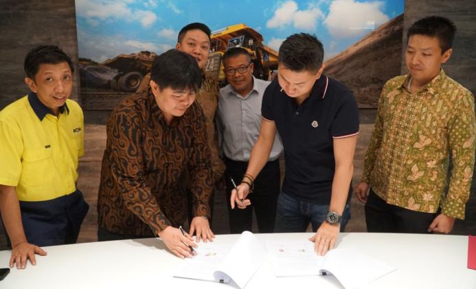 (dari kiri ke kanan), Direktur Utama PT Borneo Olah Sarana Sukses Tbk Freddy Tedjasasmita, Direktur Utama PT Pratama Bersama William Siawira, Direktur Keuangan PT Borneo Olah Sarana Sukses Tbk Widodo Nurly Sumady, Direktur PT Putra Perkasa Abadi Joko Triraharjo, Presiden Direktur PT Putra Perkasa Abadi Christianto dan Vice Presiden Direktur PT Putra Perkasa Abadi Ardi T Tjoa saat menandatangani perjanjian kerjasama jasa pertambangan antara PT Pratama Bersama (PB) dengan PT Putra Perkasa Abadi (PPA) di Jakarta, Senin (7/1/2019). AKTUAL/STR-Eko S Hilman