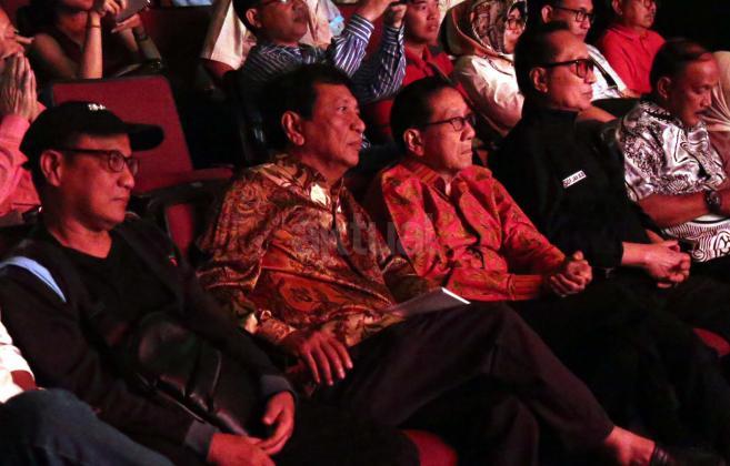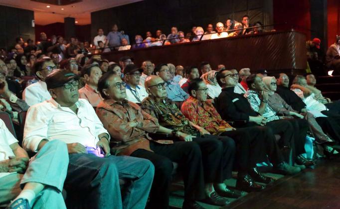 Tokoh peristiwa Malapetaka 15 Januari (Malari), Hariman Siregar, bersama Tokoh Politik Akbar Tanjung saat peringatan HUT ke-19 Indonesian Democracy Monitor (Indemo) dan peringatan 45 Tahun Peristiwa Malari di Taman Ismail Marzuki, Jakarta, Selasa (15/1/2019) malam. AKTUAL/Tino Oktaviano